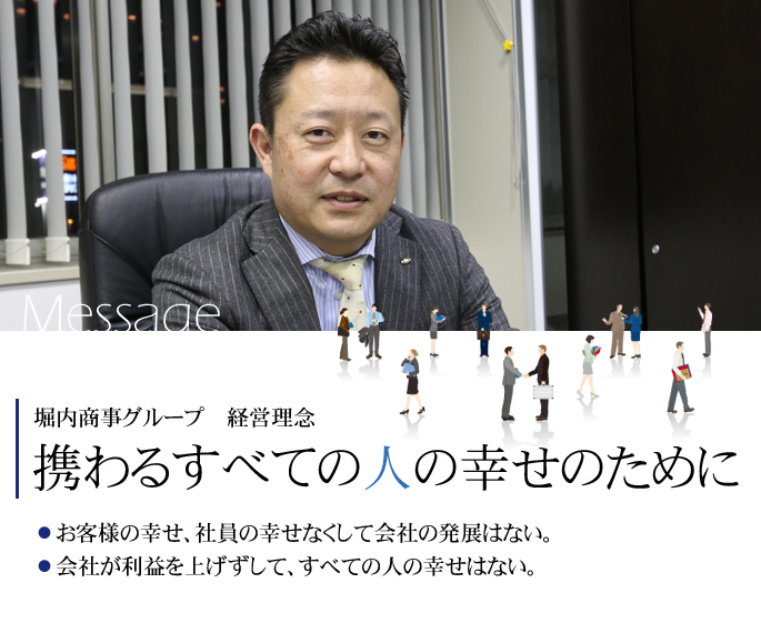 私たちは「4つの大切な心がけ」を最も重んじて行動し、お客様はじめ社内、家庭内ほかあらゆる場面にてみんなが良き人間関係を築き、経営理念である「携わるすべての人の幸せのために」 を実現させ、発展して行きたいのです。 やるからには面白く、絶対楽しみたい!!みんなで心から喜びあいたい!!私たちの思いはこれらが全てなんです。
